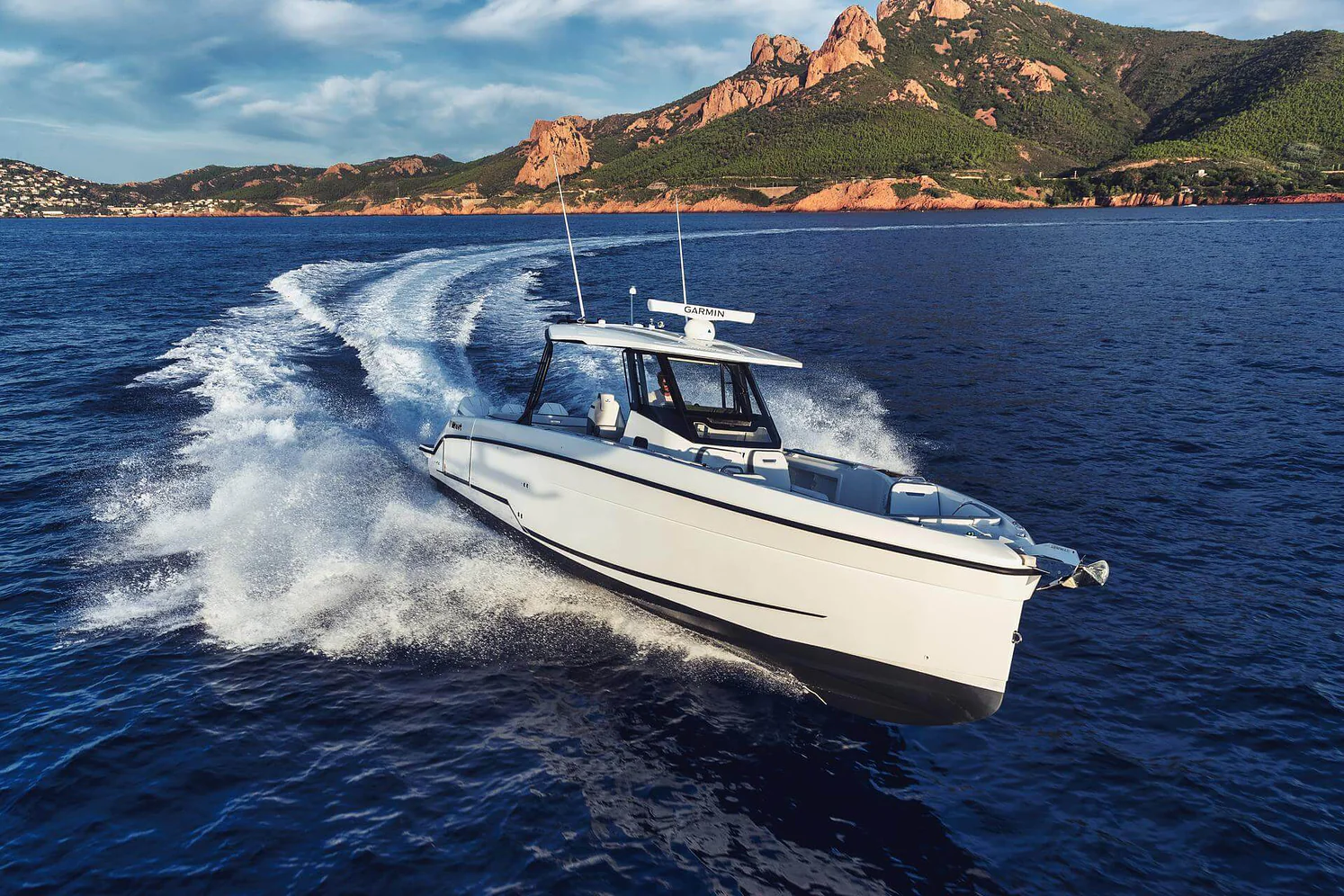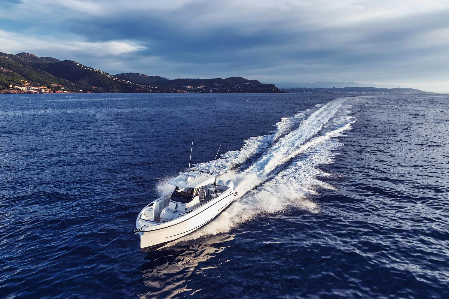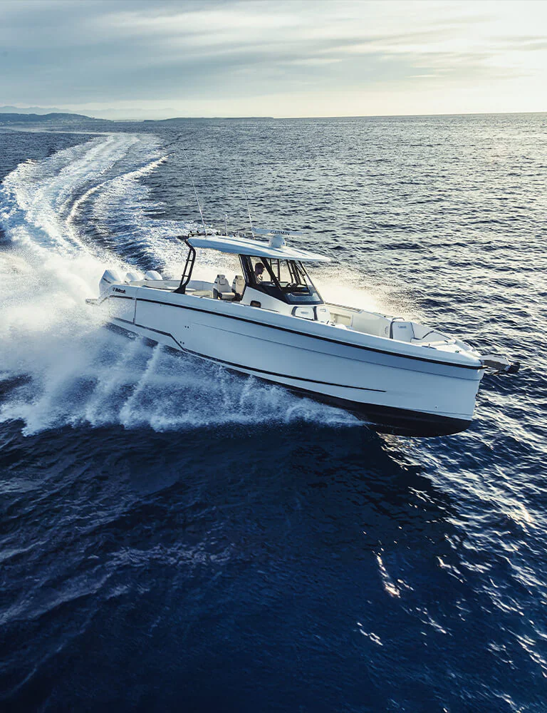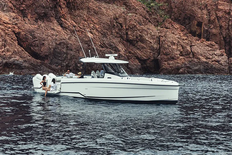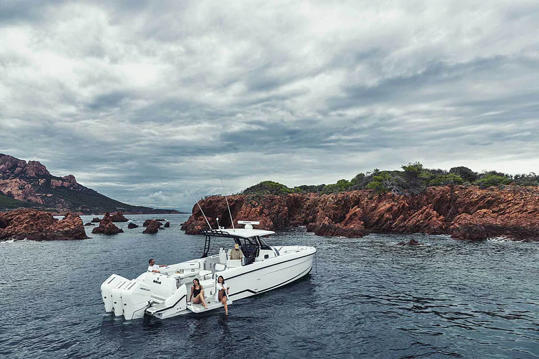 Its inviting foredeck, C-shaped seating, and convertible sun lounger call for unforgettable moments with friends and family. At 38 feet in length, this boat provides excellent circulation onboard due to its one-level deck, superior seating, an innovative swim terrace with unmatched water access, and entertaining features built for water sports enthusiasts.
