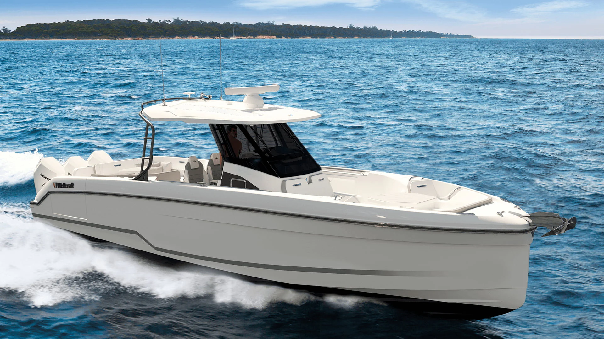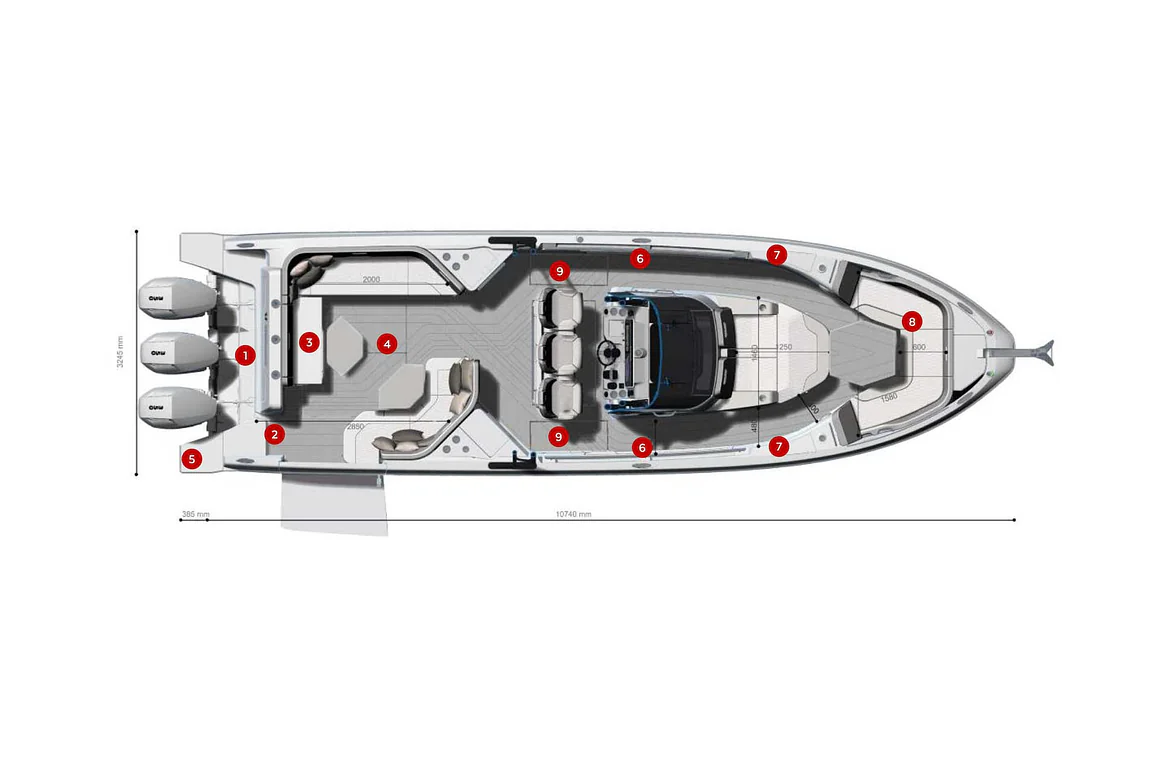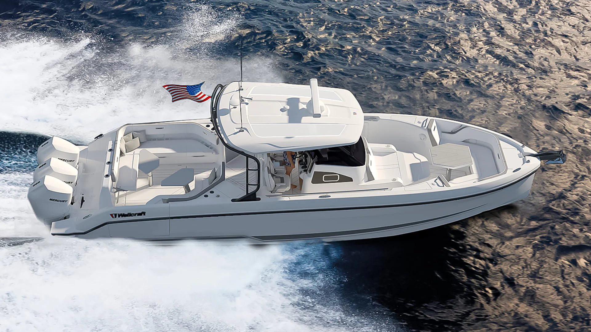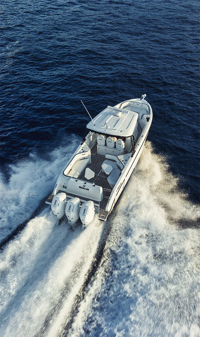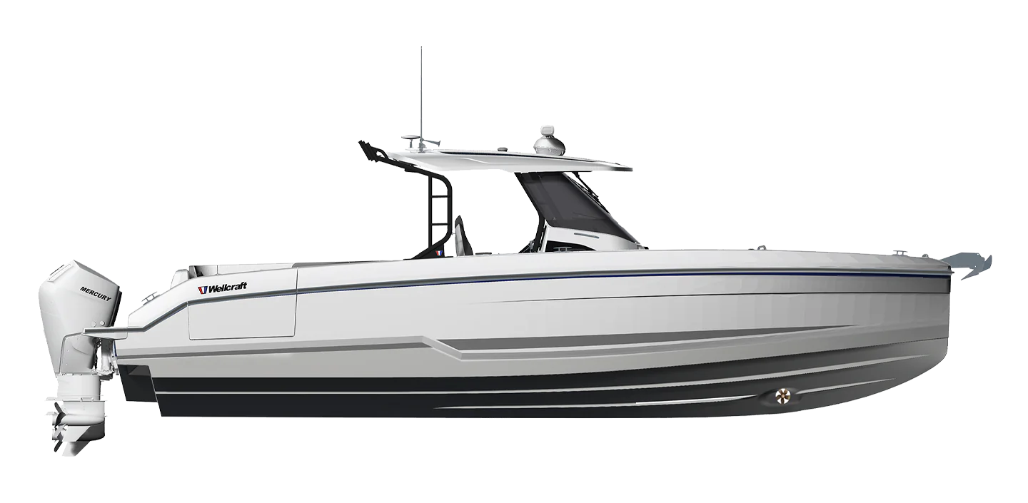 The information provided is for reference only. Actual design, technical specifications, equipment, and options may differ from the photos, videos, or other content shown. Some configurations may not be available depending on region or model. For detailed information on features, available options, and engine configurations, please contact an authorized Wellcraft dealer.