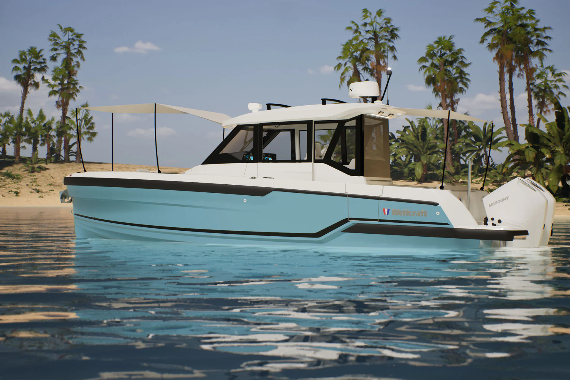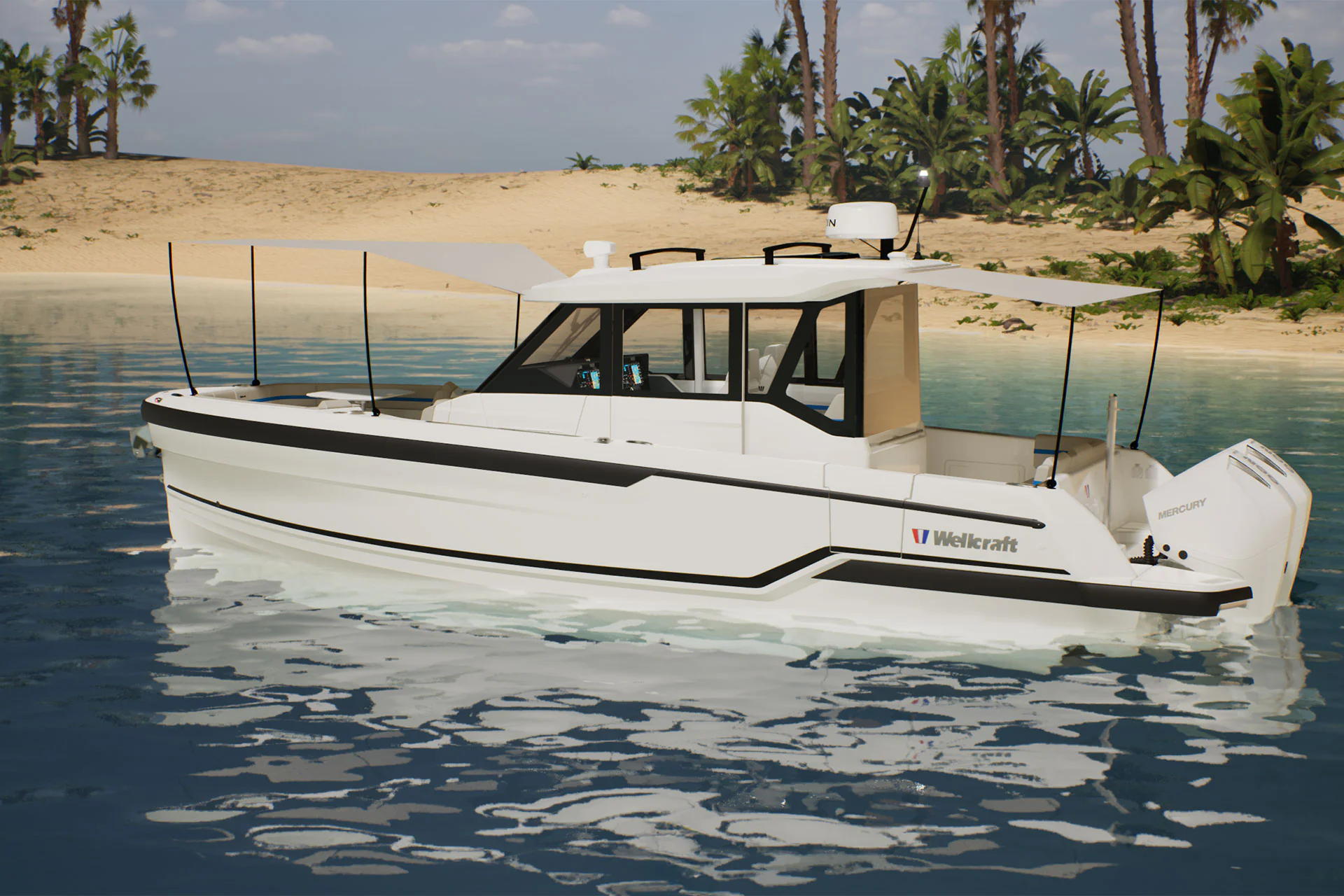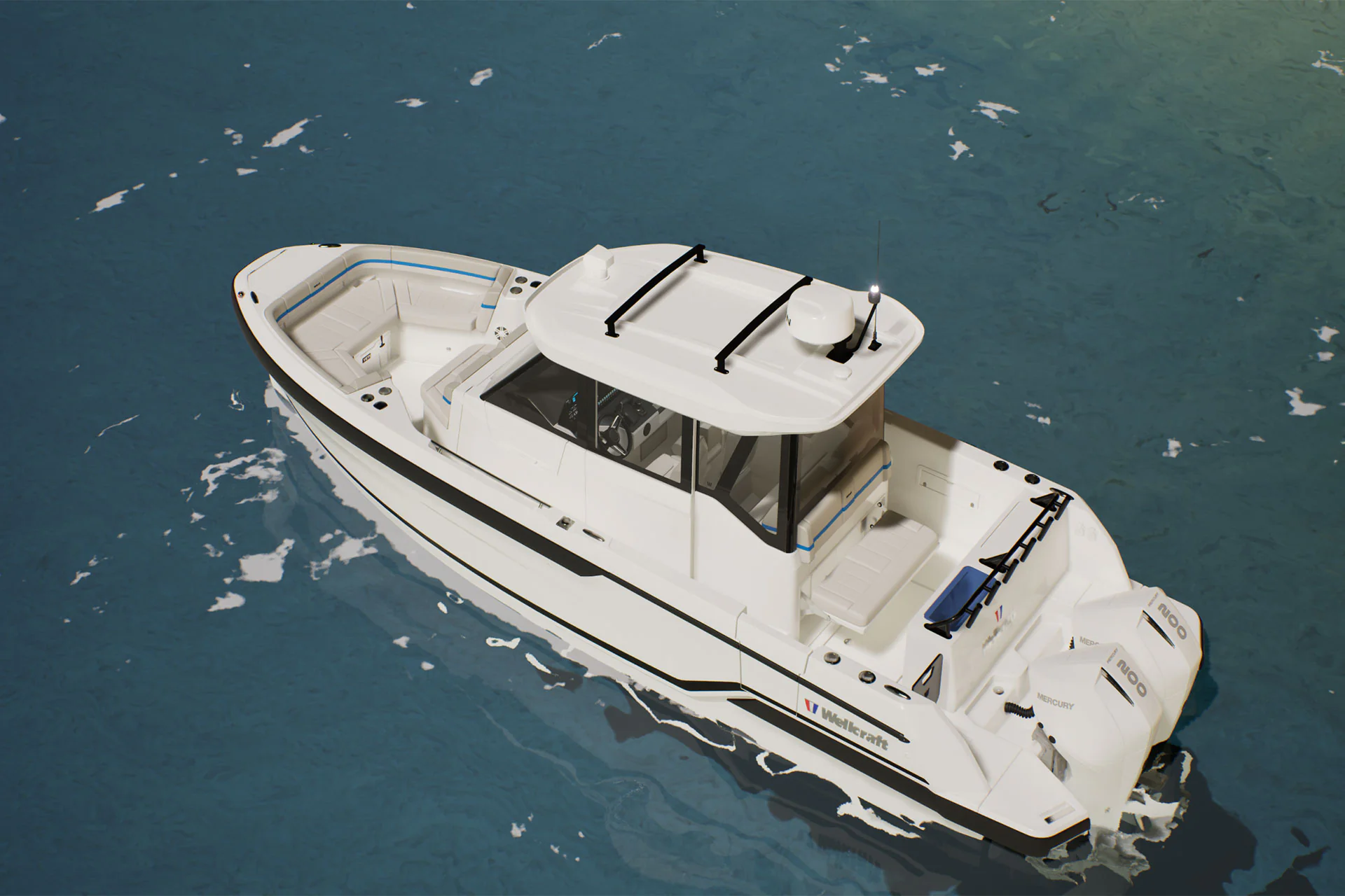 The Wellcraft 28 Explorer is a tough, offshore-ready boat with a fully enclosed wheelhouse, built for long-distance, and all-season exploration. It’s the perfect companion for those who seek real thrill and driving pleasure.