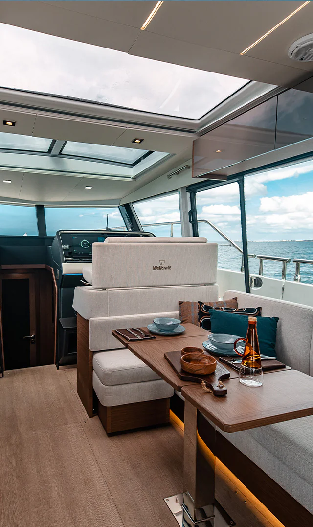 Step inside the Wellcraft 44 Explorer, and you’ll discover an interior built for true adventure without sacrificing comfort. Crafted with high-end materials and a focus on functional styling, the full-beam cabins offer a sophisticated yet rugged atmosphere, perfect for extended cruising.