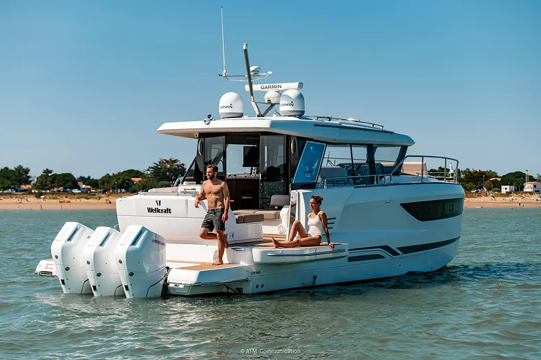 The information provided is for reference only. Actual design, technical specifications, equipment, and options may differ from the photos, videos, or other content shown. Some configurations may not be available depending on region or model. For detailed information on features, available options, and engine configurations, please contact an authorized Wellcraft dealer.