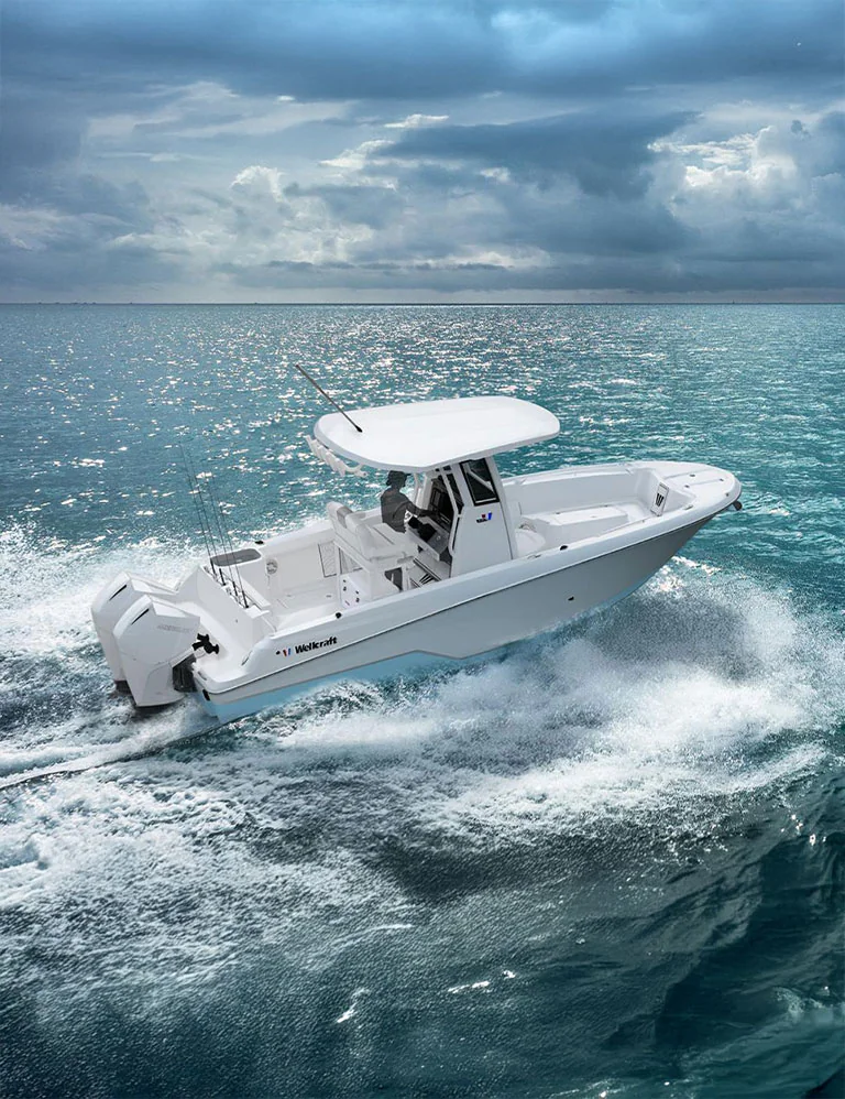 The all-new Wellcraft 243 Fisherman is not a departure from the past — it is a forward-looking evolution. With a forwardshifted console, expanded cockpit, redesigned bow, and class-leading fuel capacity, it represents the next chapter in the Fisherman story: more capable, more comfortable, and more purposeful than ever.