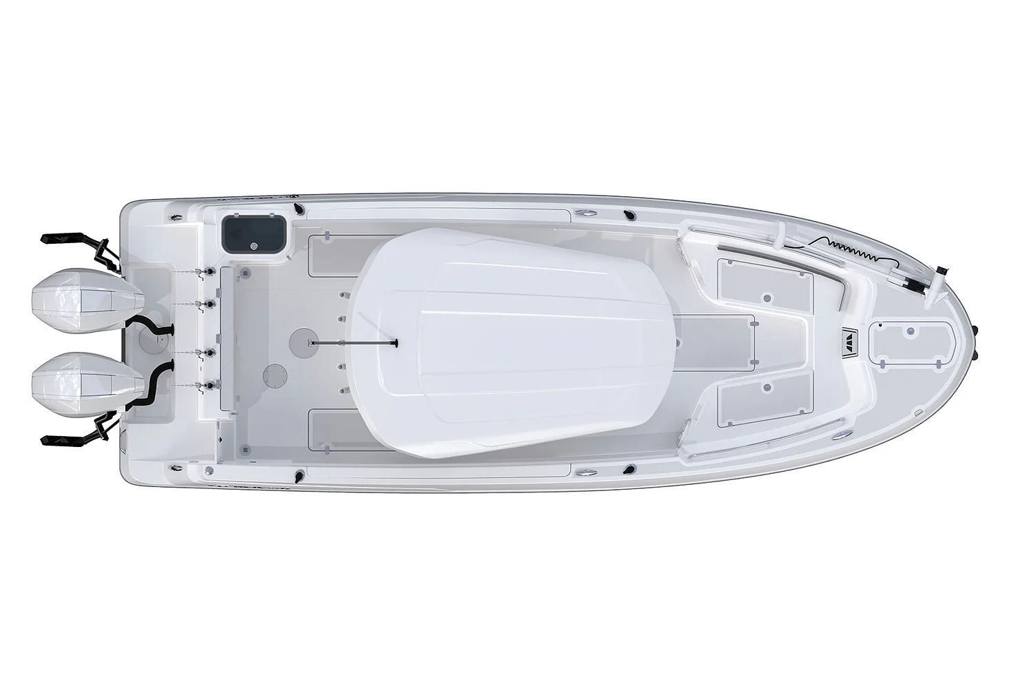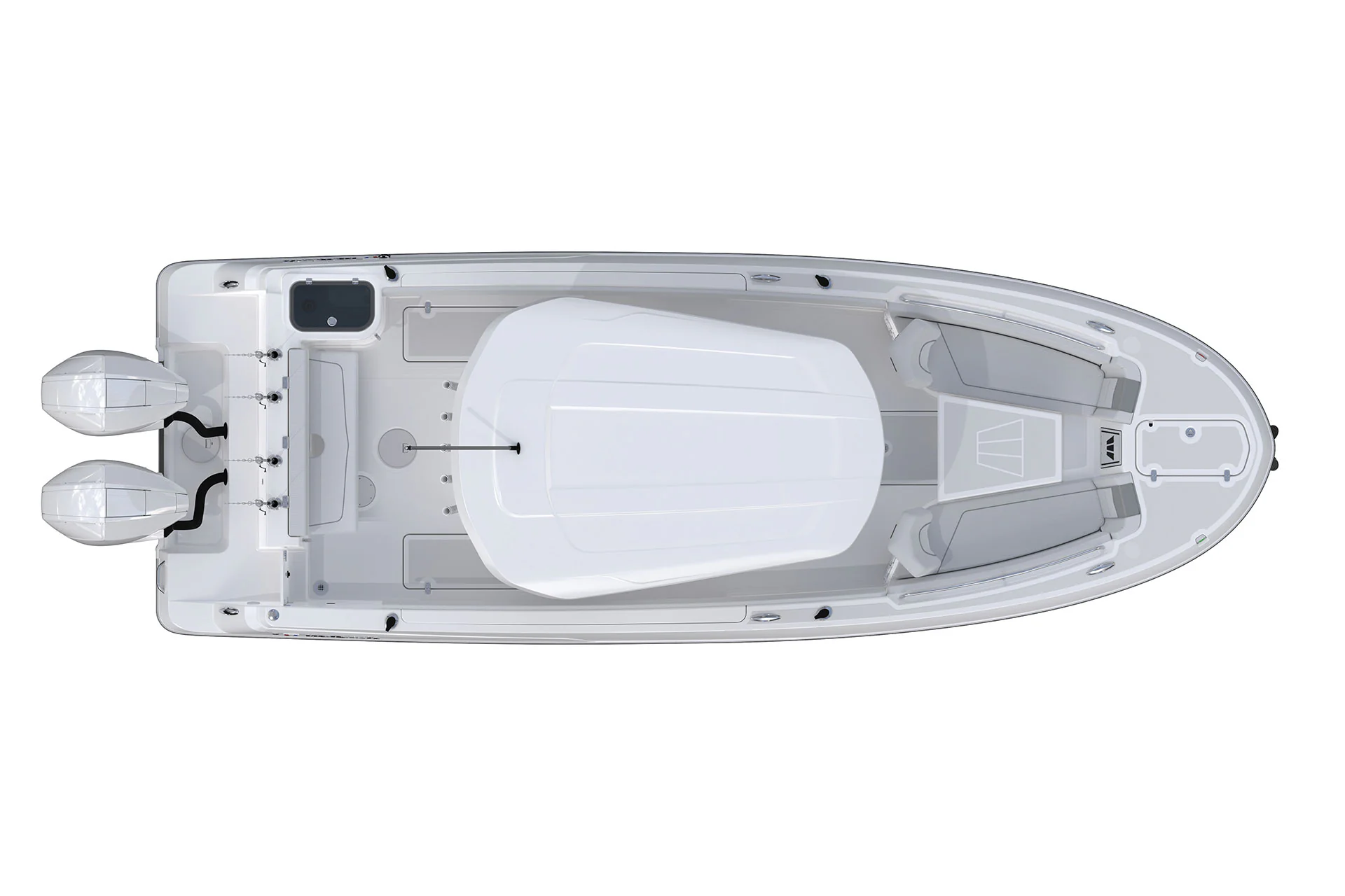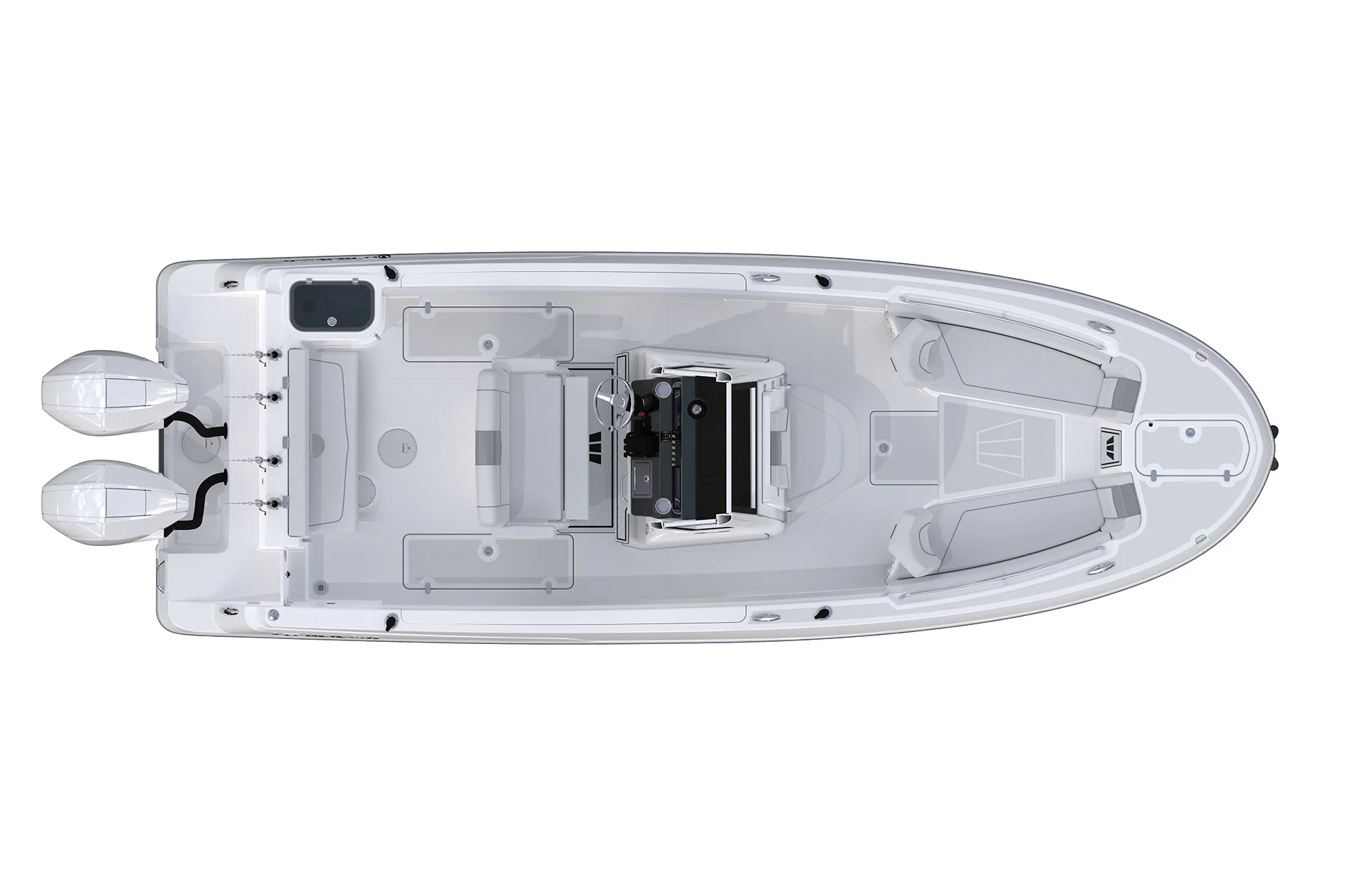 Step inside and discover a smartly designed interior that blends functionality with comfort. The ergonomic helm station features intuitive controls, a large dash for dual displays, and a protective windscreen for comfort during high-speed runs.