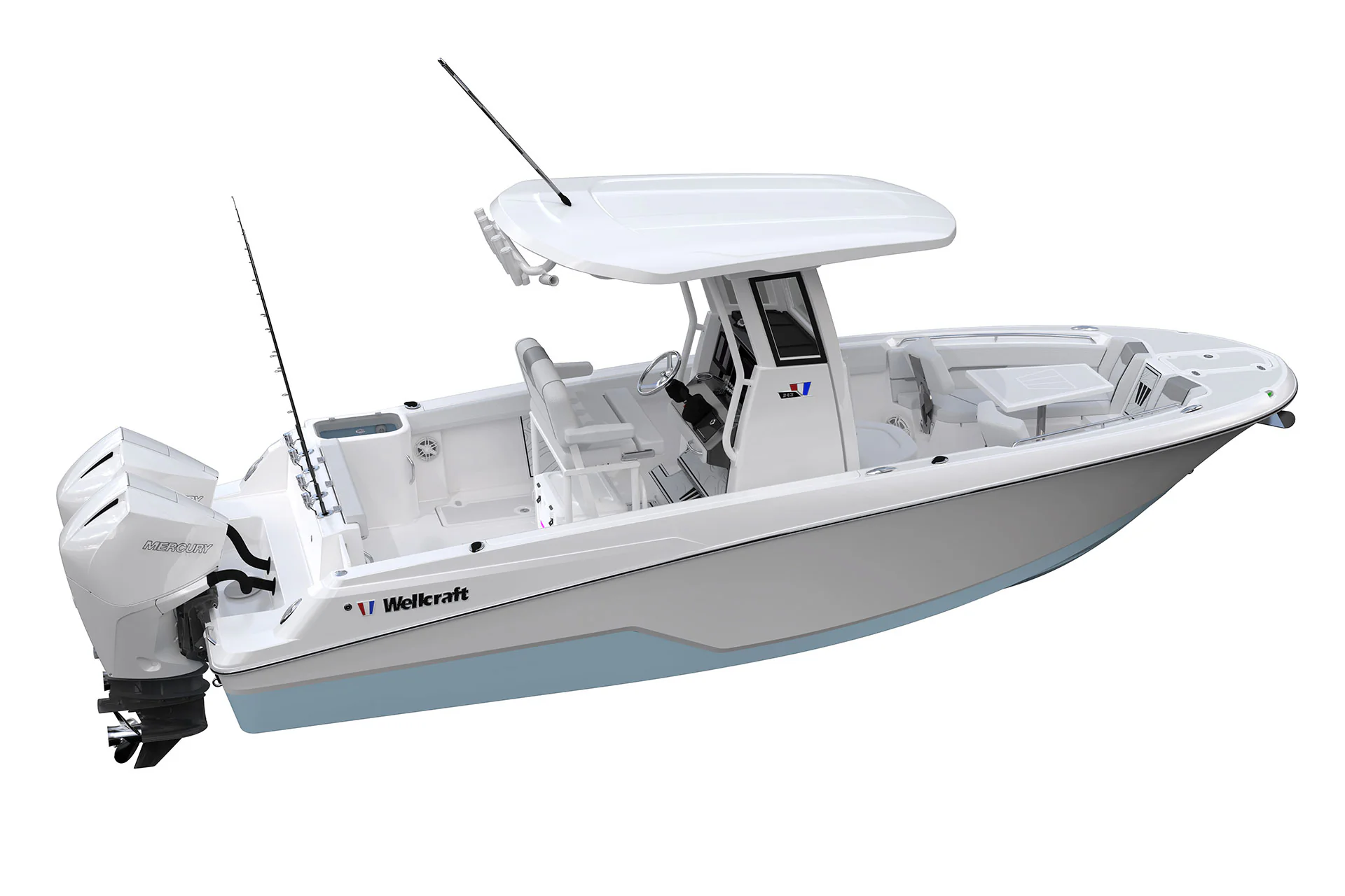 The all-new Wellcraft 243 Fisherman is the latest center console designed by Wellcraft, engineered to blend true offshore performance with the versatility today’s families expect. The result is Wellcraft’s most modern expression of offshore capability, powerful, versatile, and welcoming for both dedicated anglers and families looking to make the most of every day on the water.