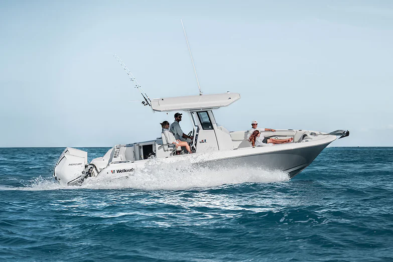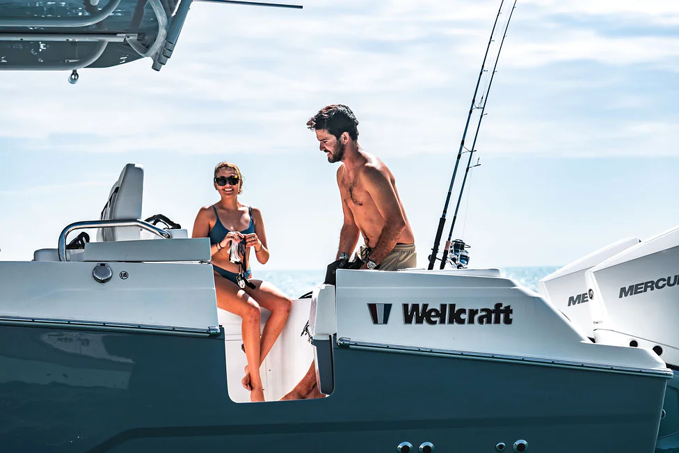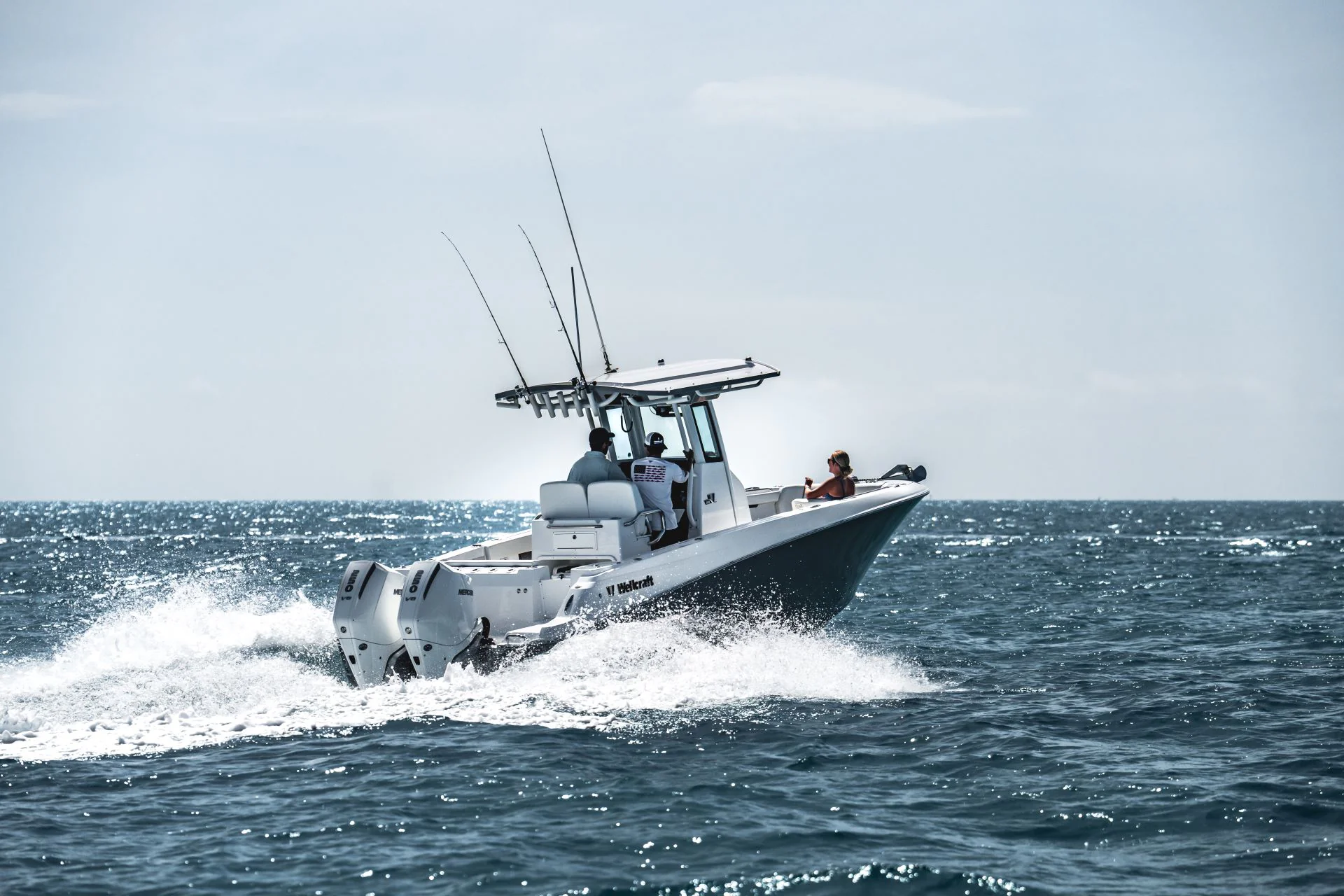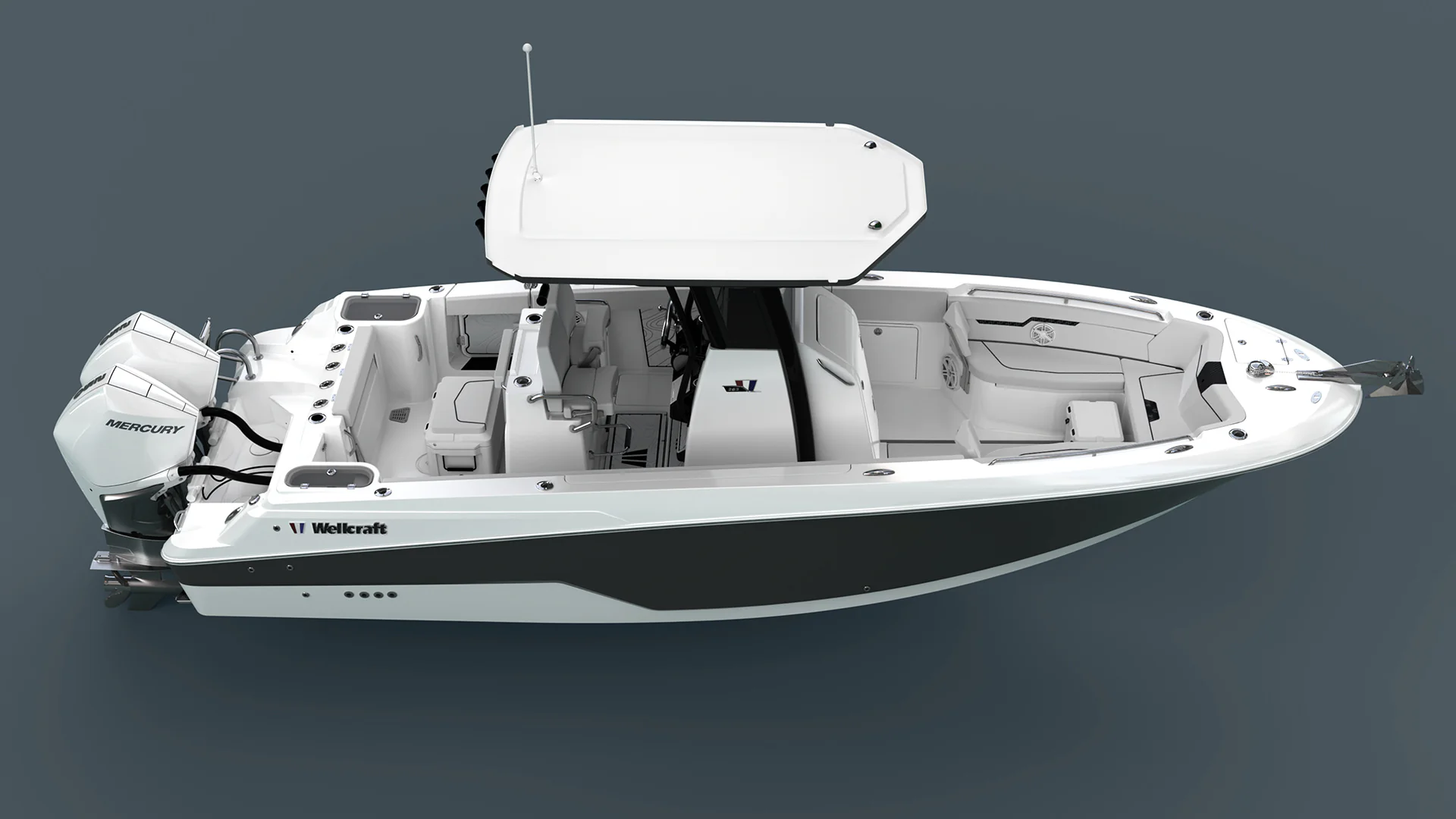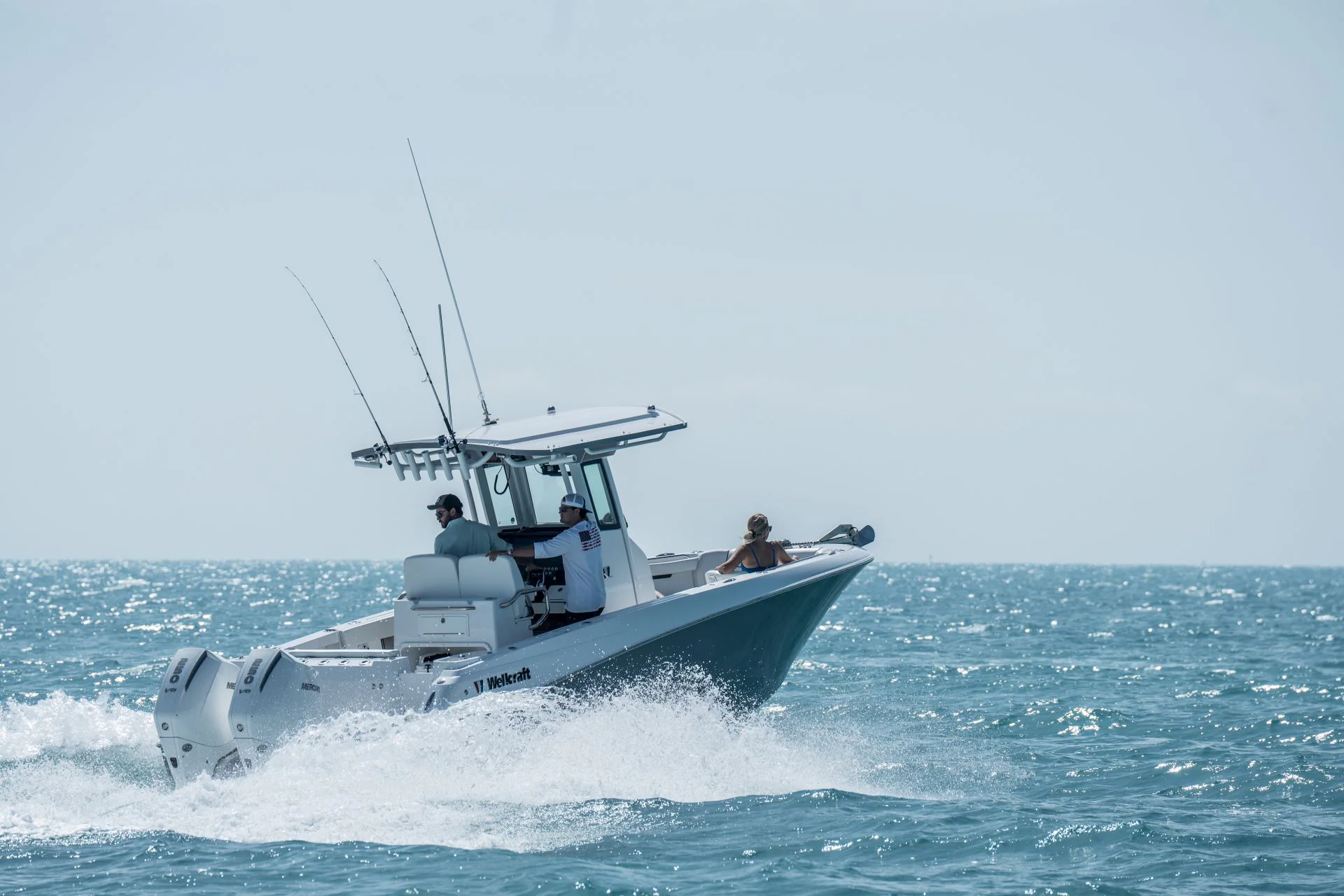 The information provided is for reference only. Actual design, technical specifications, equipment, and options may differ from the photos, videos, or other content shown. Some configurations may not be available depending on region or model. For detailed information on features, available options, and engine configurations, please contact an authorized Wellcraft dealer.