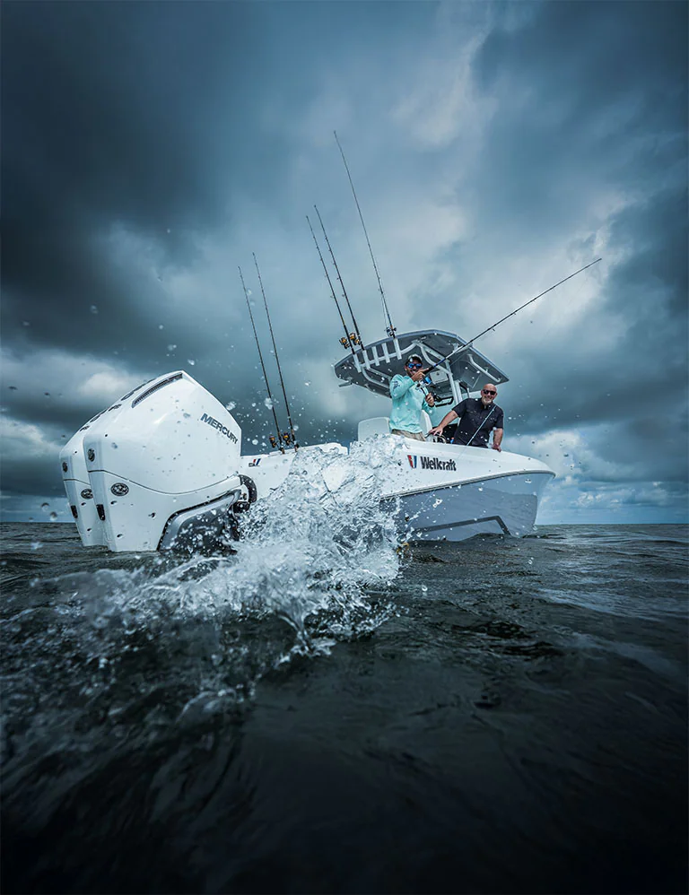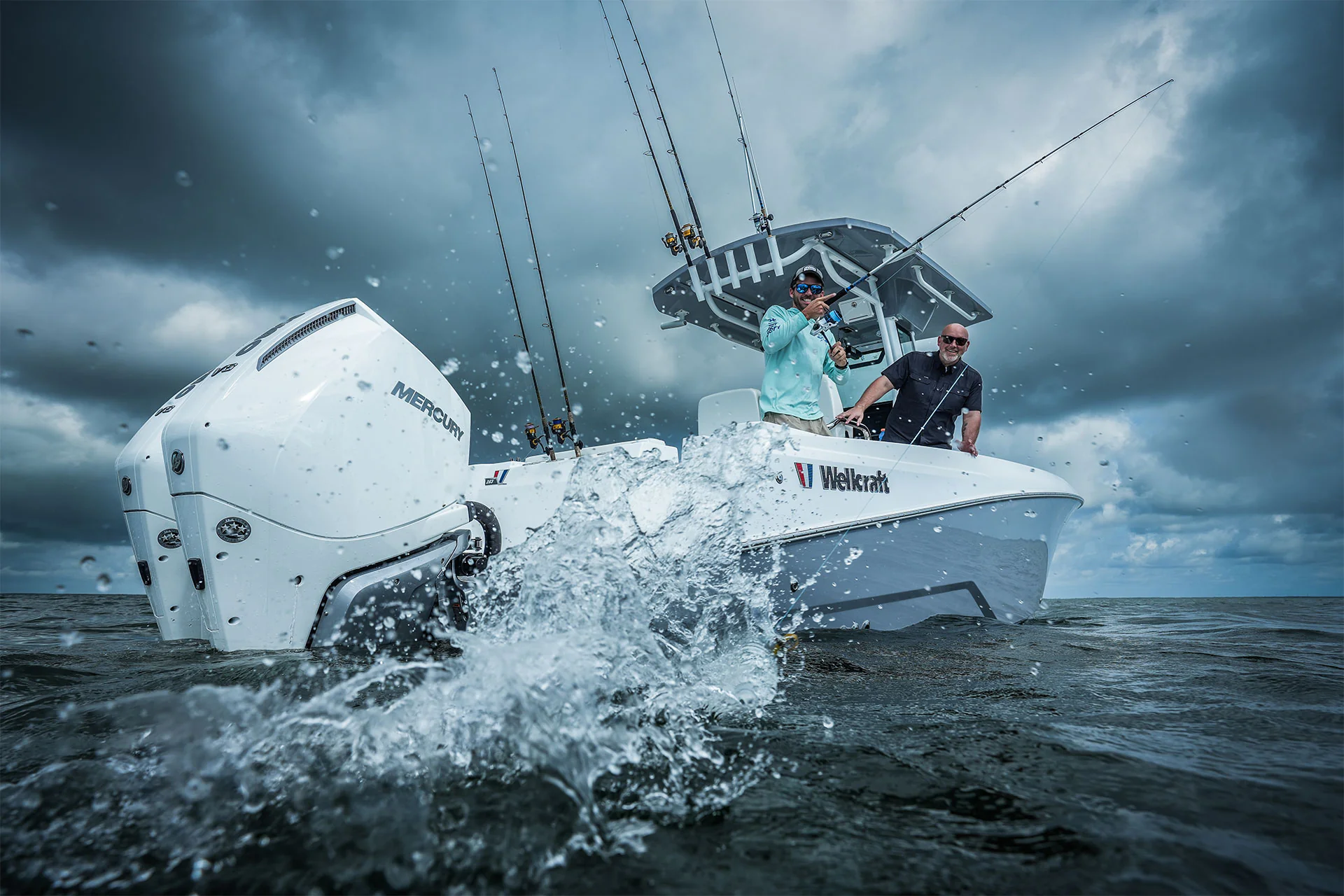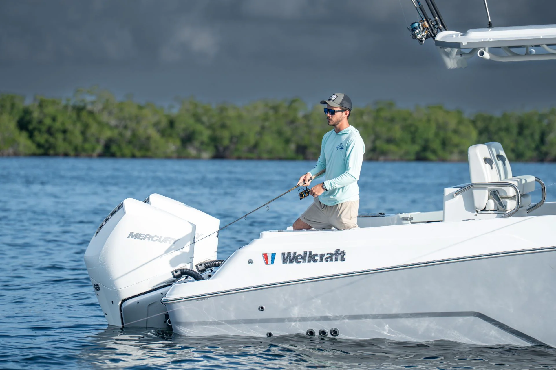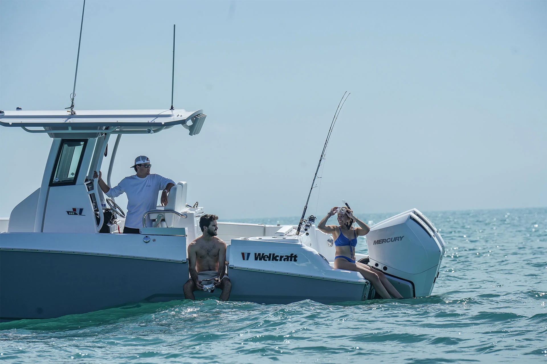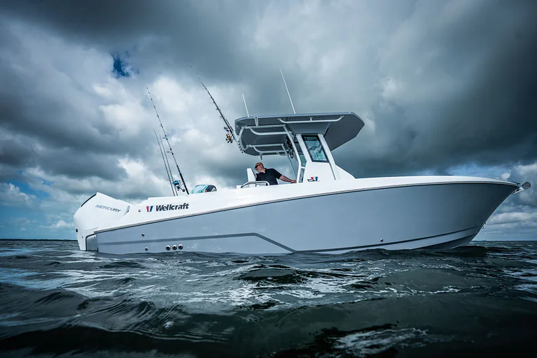 The information provided is for reference only. Actual design, technical specifications, equipment, and options may differ from the photos, videos, or other content shown. Some configurations may not be available depending on region or model. For detailed information on features, available options, and engine configurations, please contact an authorized Wellcraft dealer.