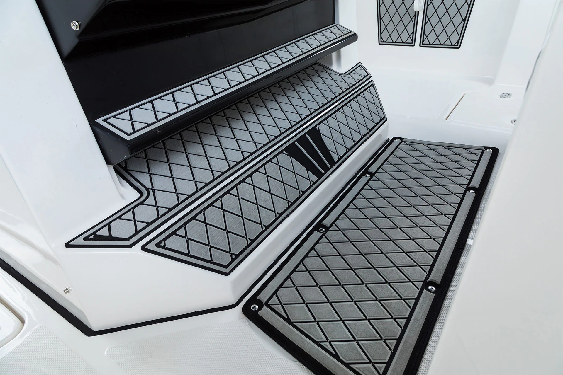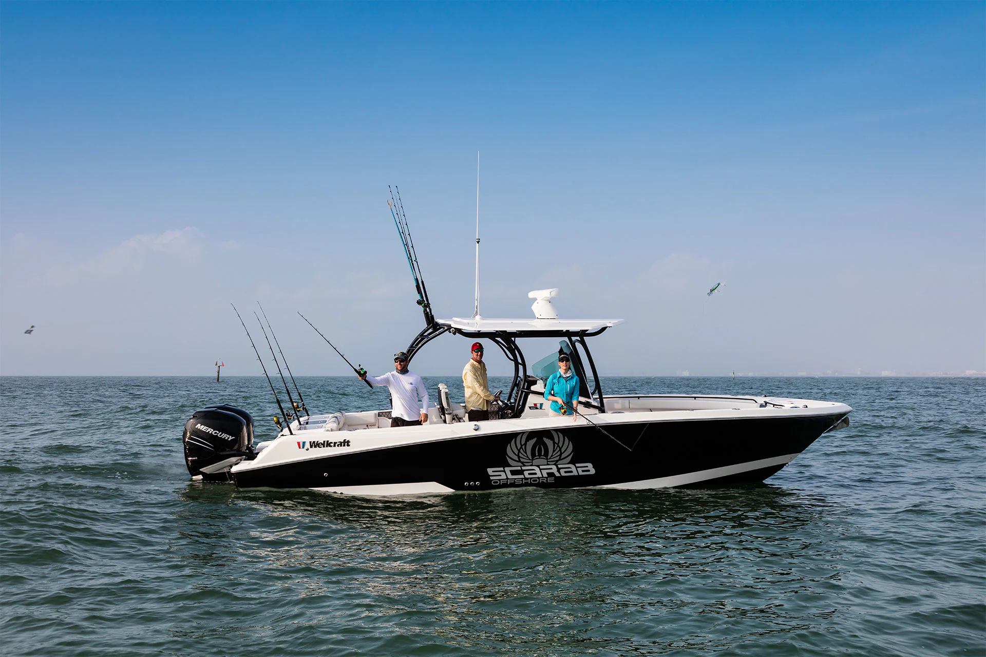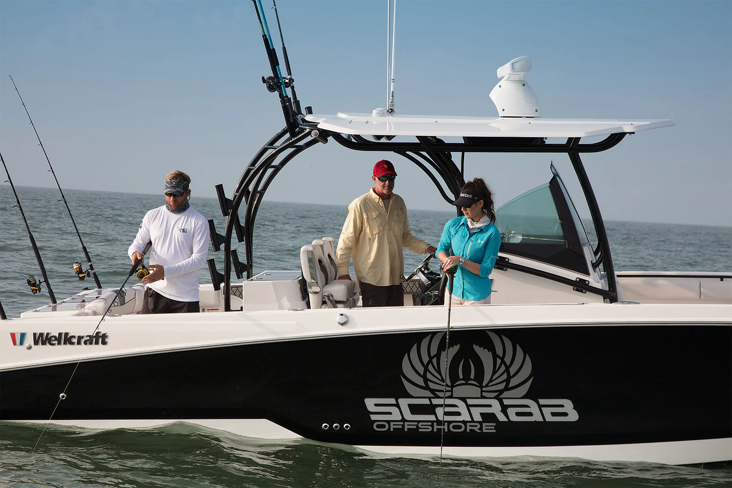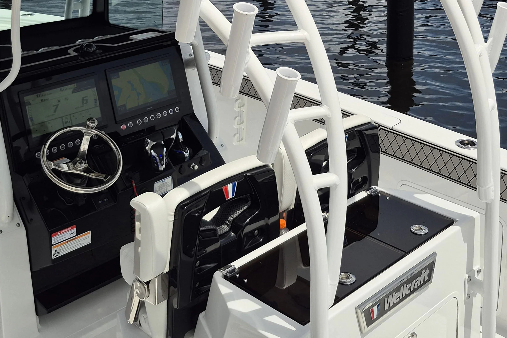 Inside the console, you’ll find secure storage, a marine head, and ergonomic helm seating for driving pleasure and control. The forward bow lounge transforms from an elevated 360° casting deck to a wrap-around seating/sun pad in seconds, creating a social space for family and friends. A port-side inward-opening dive door with ladder makes boarding effortless and brings big tuna aboard just as easily after a successful day offshore. Every detail is engineered for functionality, comfort, and adventure.