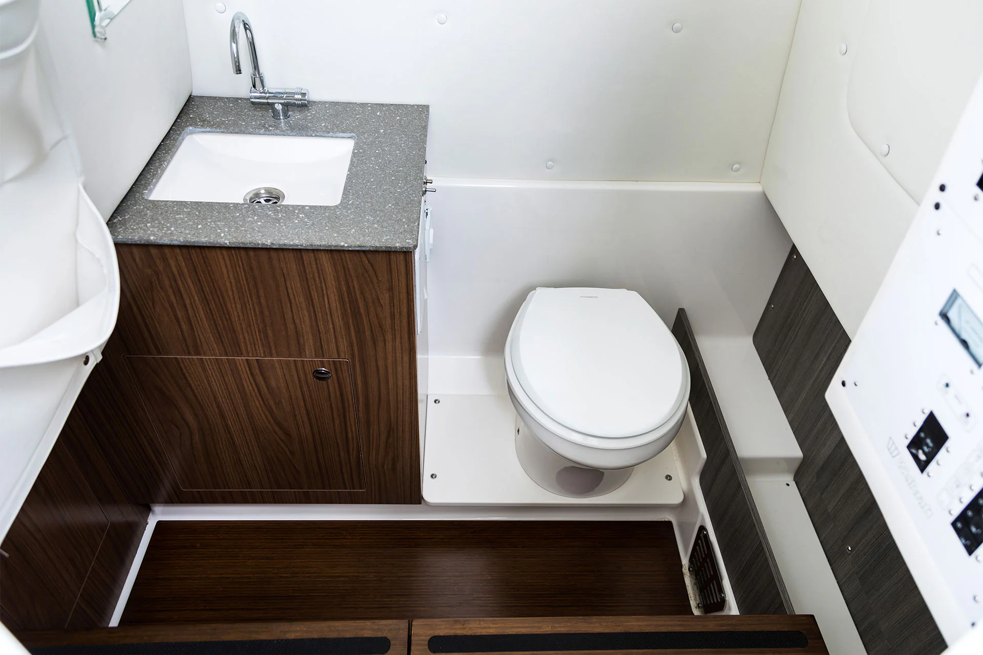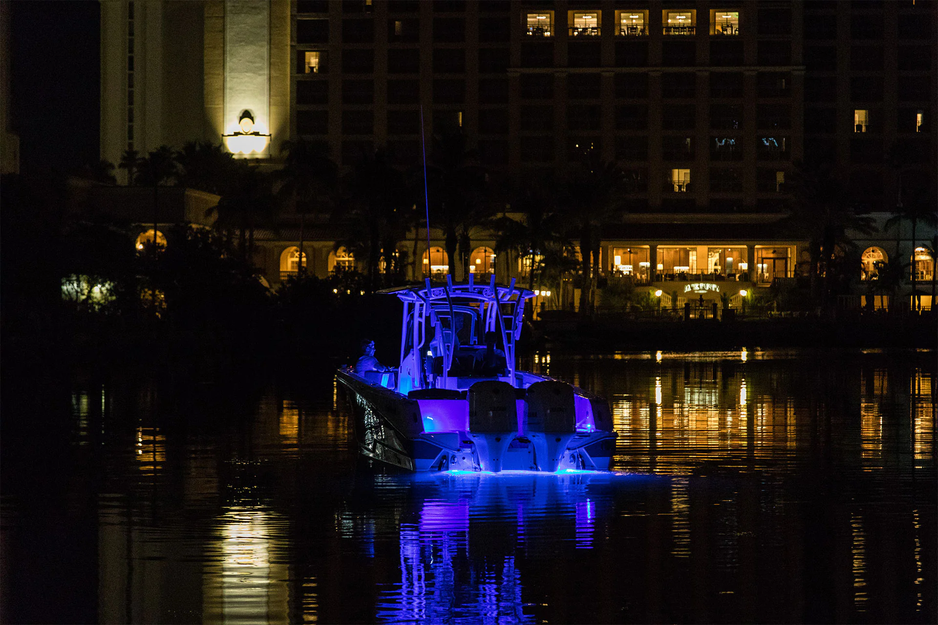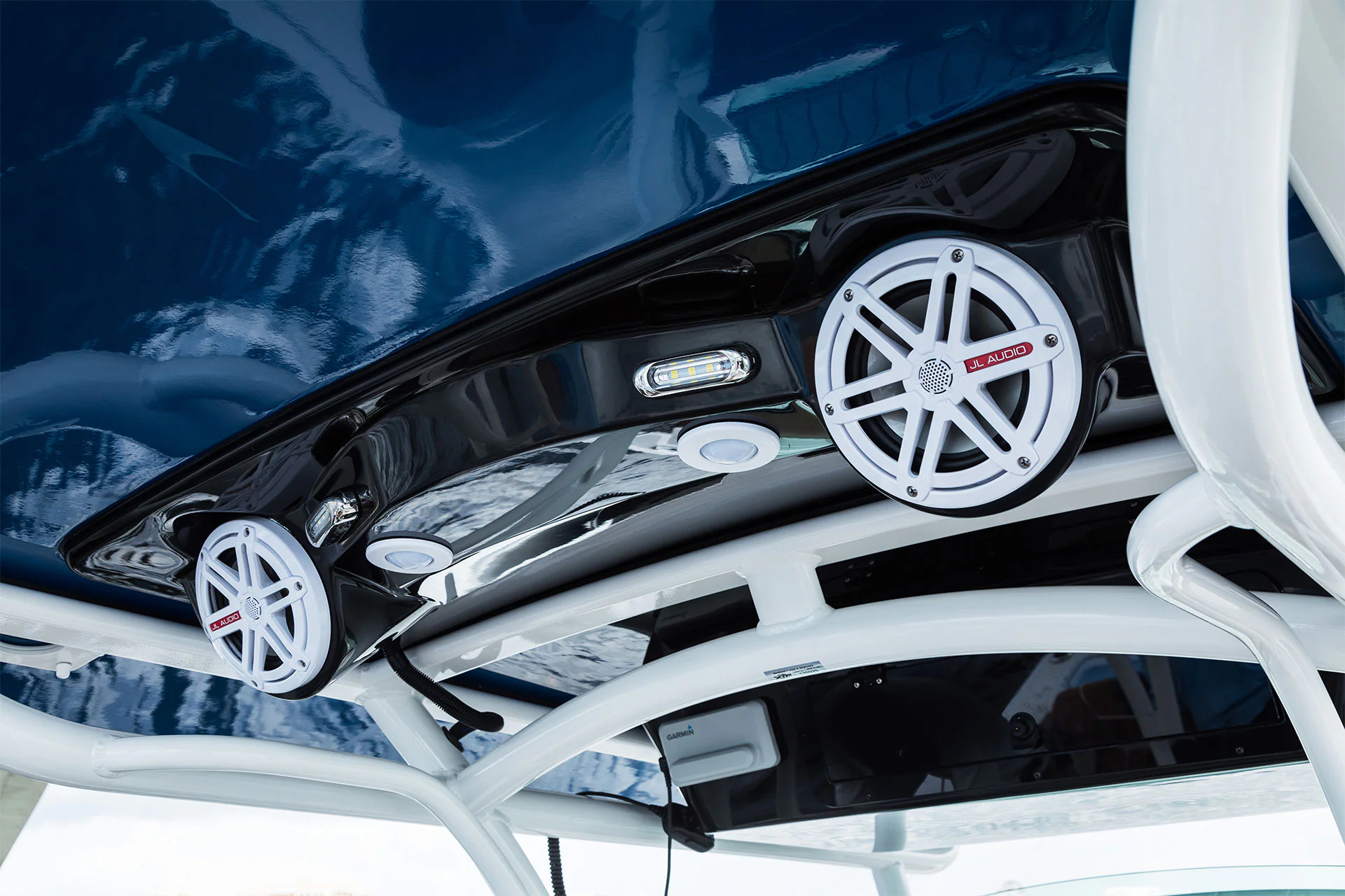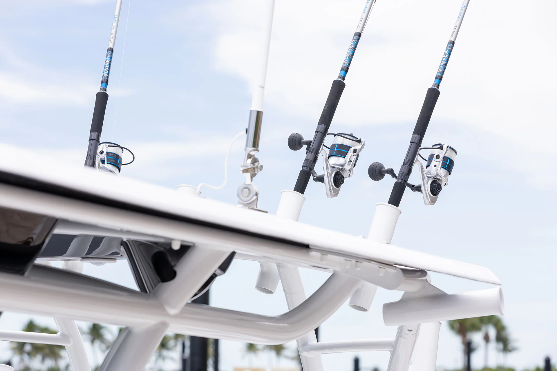 Inside the console, you’ll find secure storage, a marine head, and ergonomic helm seating for driving pleasure and control. The forward bow lounge transforms from an elevated 360° casting deck to a wrap-around seating/sun pad in seconds, creating a social space for family and friends. A port-side inward-opening dive door with ladder makes boarding effortless and brings big tuna aboard just as easily after a successful day offshore. Every detail is engineered for functionality, comfort, and adventure.