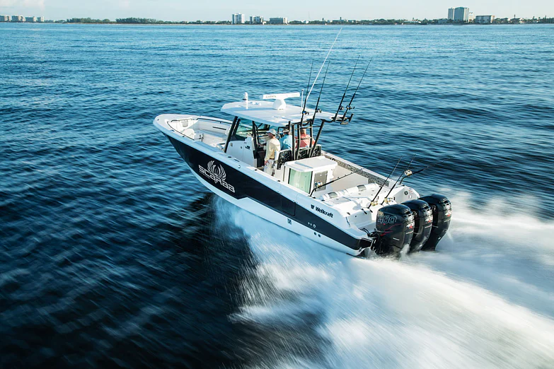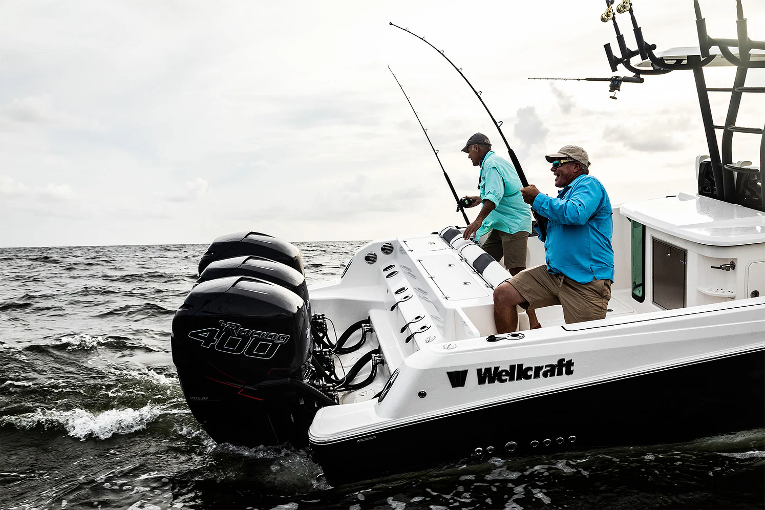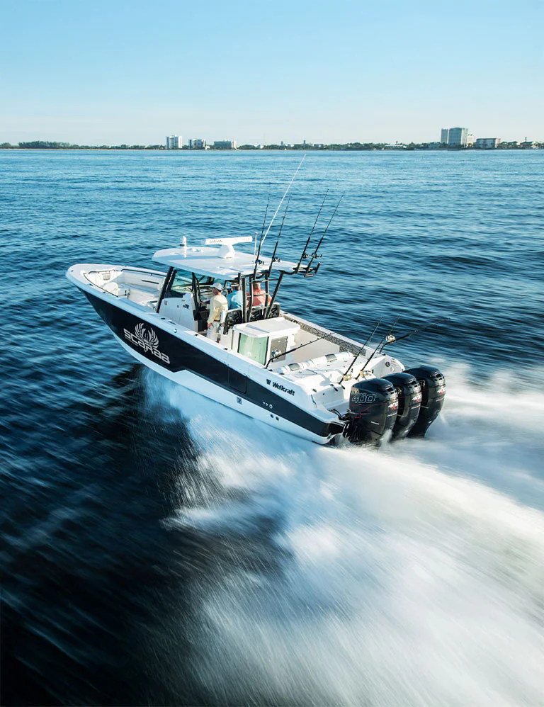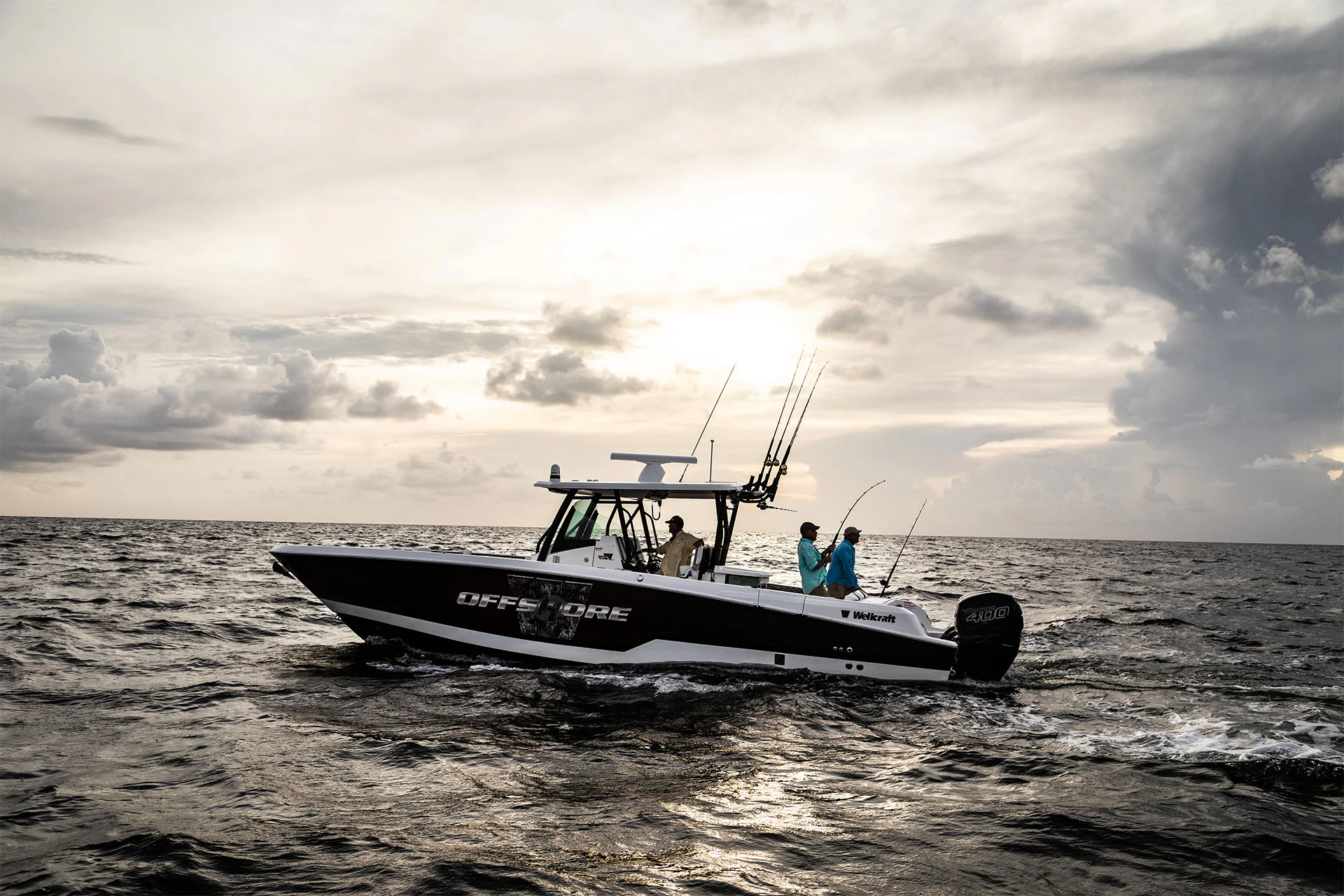 The Wellcraft 352 Fisherman is a rugged, offshore center console that blends luxury and fishing muscle. With triple outboard punch, deep V seaworthiness, and angler-ready features, it’s built to explore, and delivers a reliable and pure driving pleasure for days on the water.
