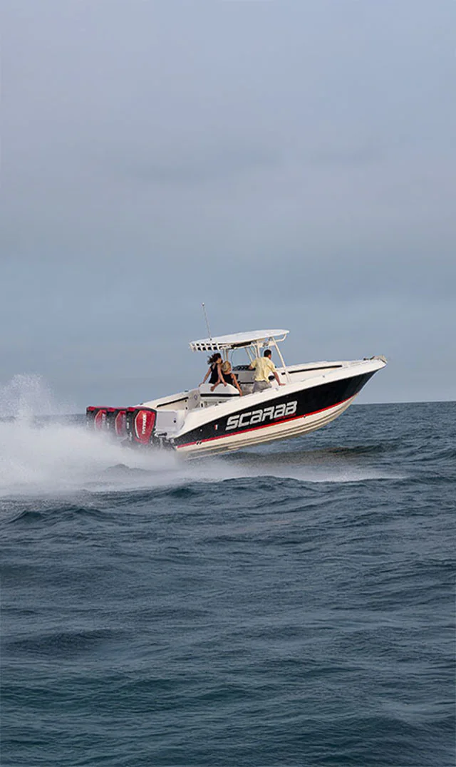 Launch of the 35 Scarab Offshore Tournament , equipped with over 1,000 horsepower, this powerhouse was built to conquer open waters with speed, strength, and confidence.